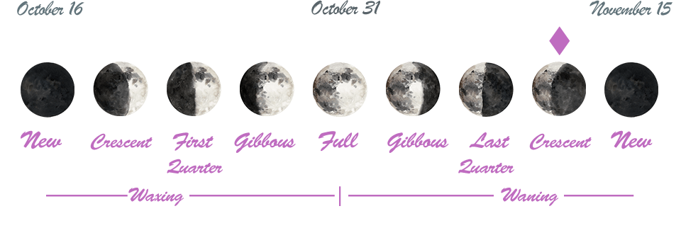 - The Last Quarter Moon occurred on the 8th, and the New Moon will occur on November 15th.