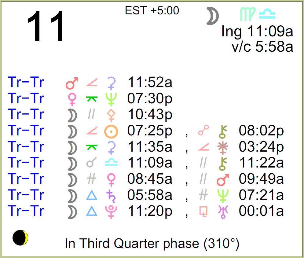 - A void Moon period occurs from 5:58 AM to 11:09 AM.