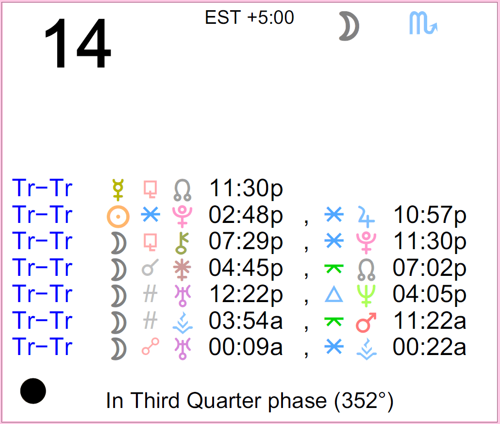 - Current retrogrades: Chiron Rx, Uranus Rx, Neptune Rx.