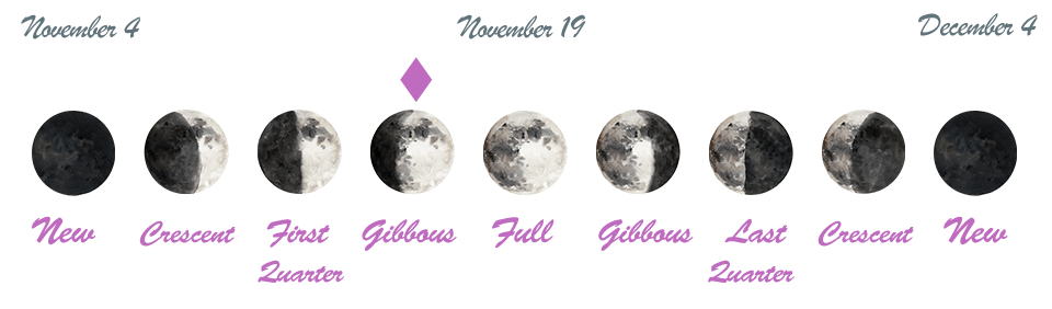 - The First Quarter Moon occurred on the 11th, and the Full Moon will happen on the 19th.