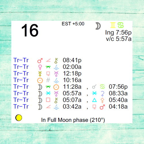 Description: Transiting Moon SesquiSquare Transiting Mars