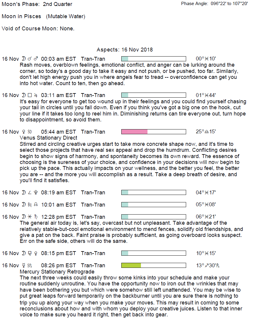 **Conjunctions to Select Fixed Stars on November 16, 2018.**