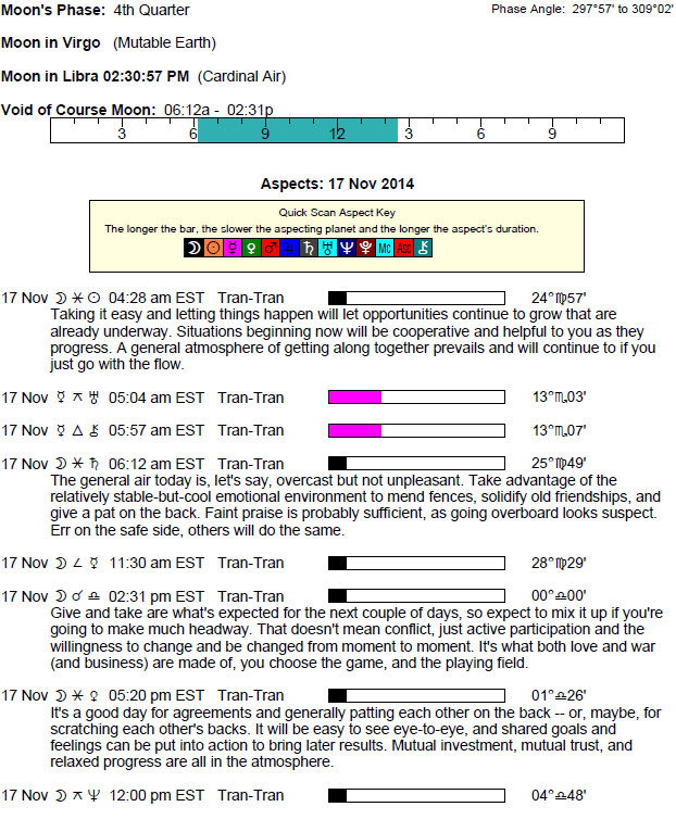 - The Moon is in Libra from 2:30 PM EST forward (until Thursday, November 20th, at 12:30 AM EST).