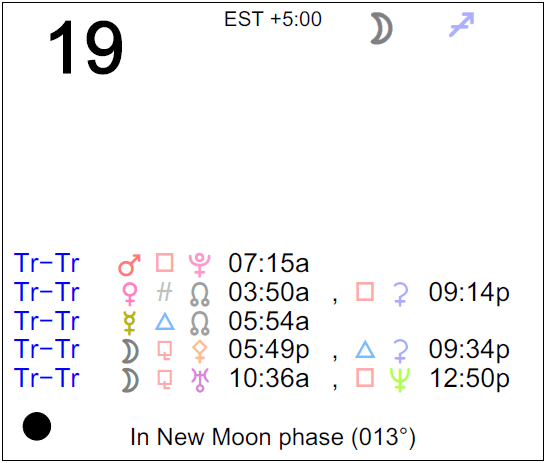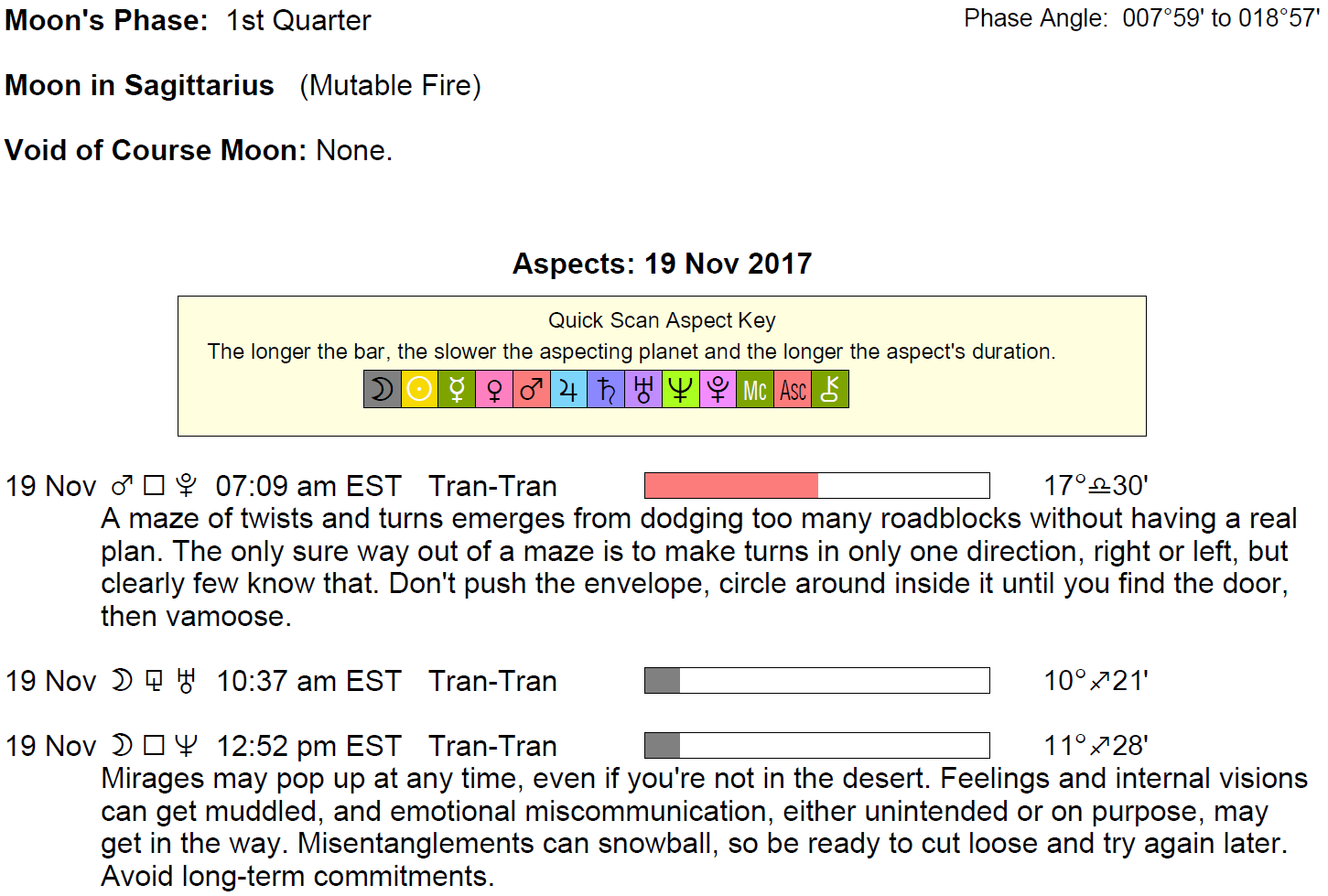 The following aspects (major only) and positions are at noon (EST) on November 19th: