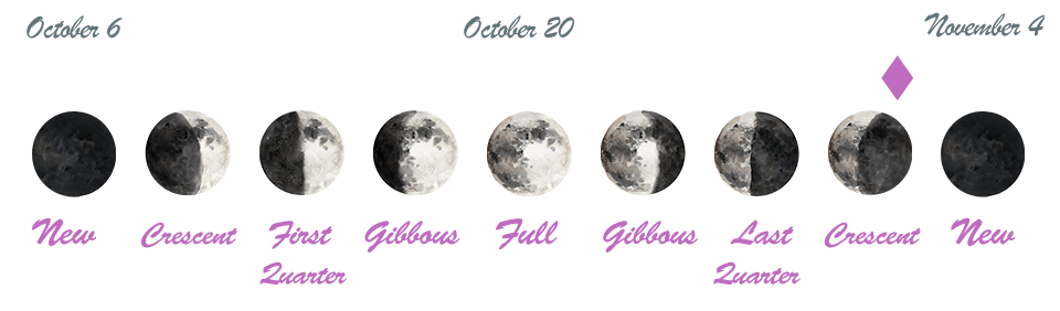 - The Last/Third Quarter Moon occurred on the 28th, and the New Moon will happen on November 4th.