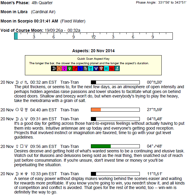 The following aspects (major only) and positions are at noon (EST) on November 20th: