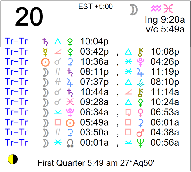 - The Moon is in Aquarius until 9:28 AM, after which the Moon is in Pisces.
