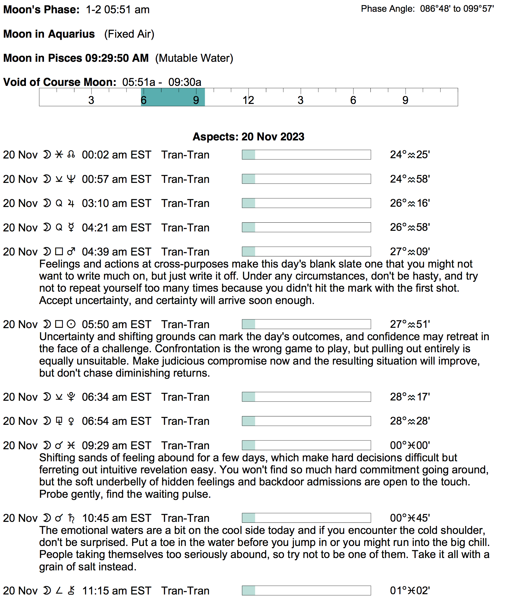 - A void Moon period occurs from 5:49 AM to 9:28 AM today.