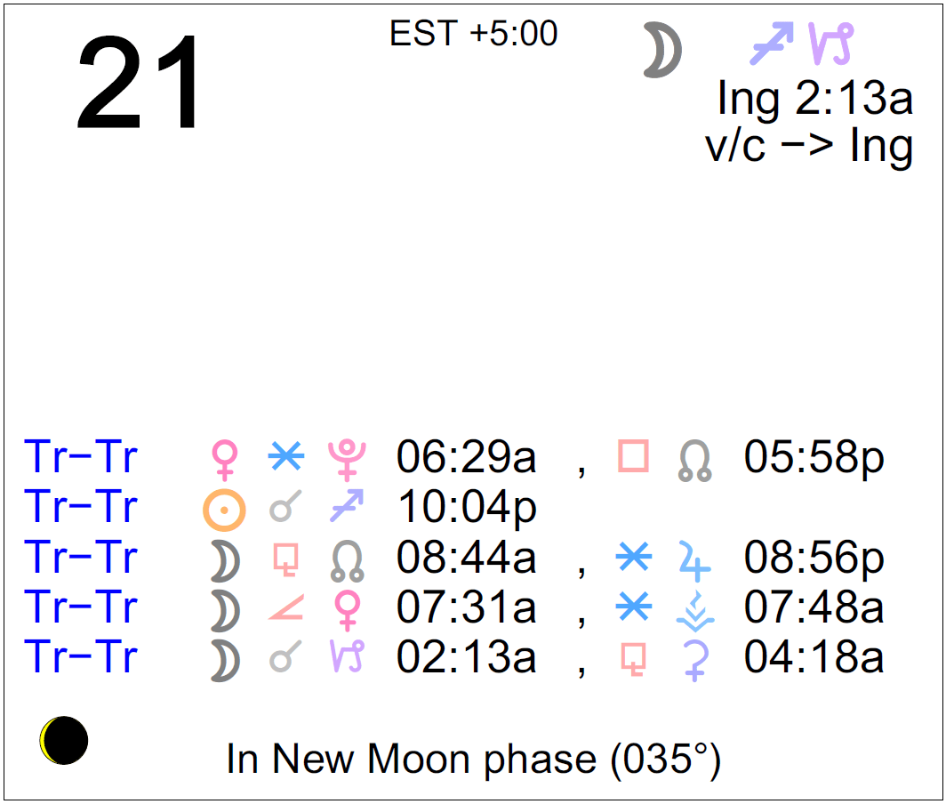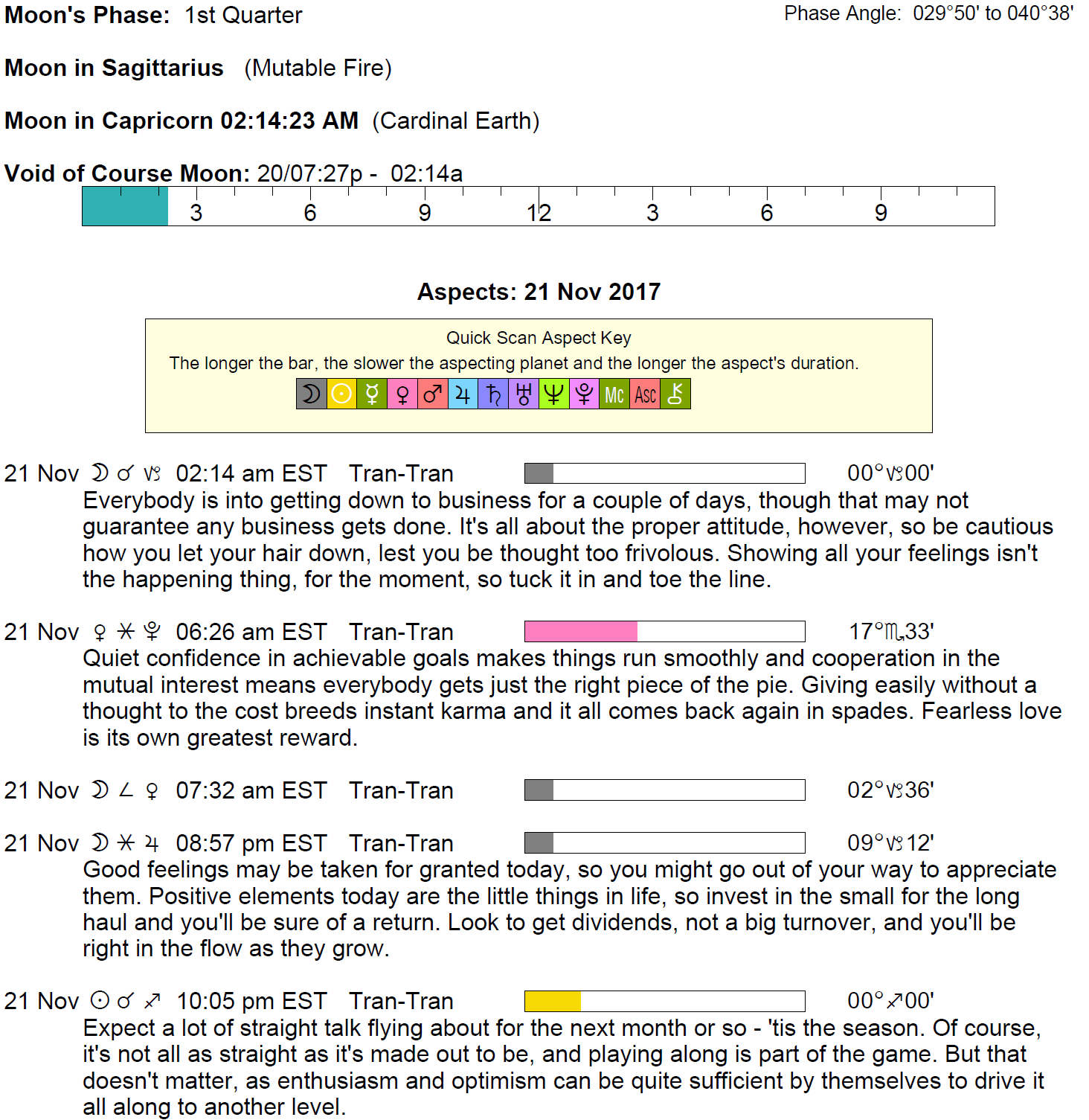 The following aspects (major only) and positions are at noon (EST) on November 21st: