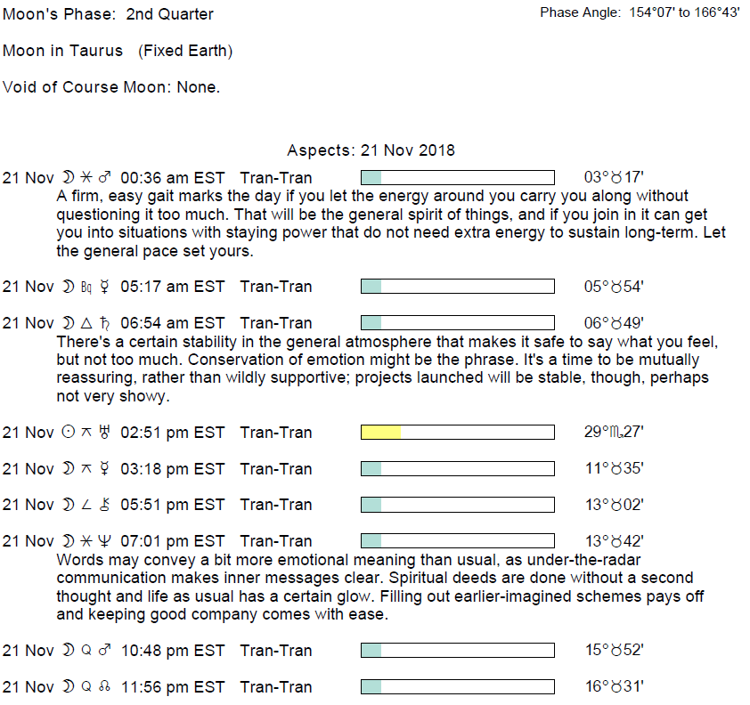 **Conjunctions to Select Fixed Stars on November 21, 2018.**