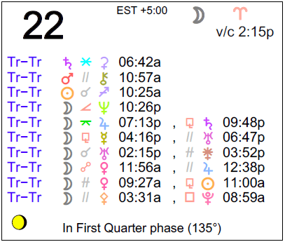 If you’re astrologically inclined and interested in the details of the Astrology of today, here are some of the factors considered in the forecasts (for the astrology of the week, see This Week in Astrology):