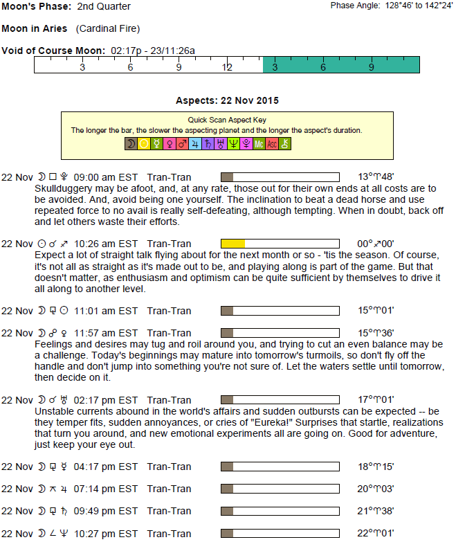 - The Moon is in Aries all day (until Monday, November 23rd, at 11:25 AM).