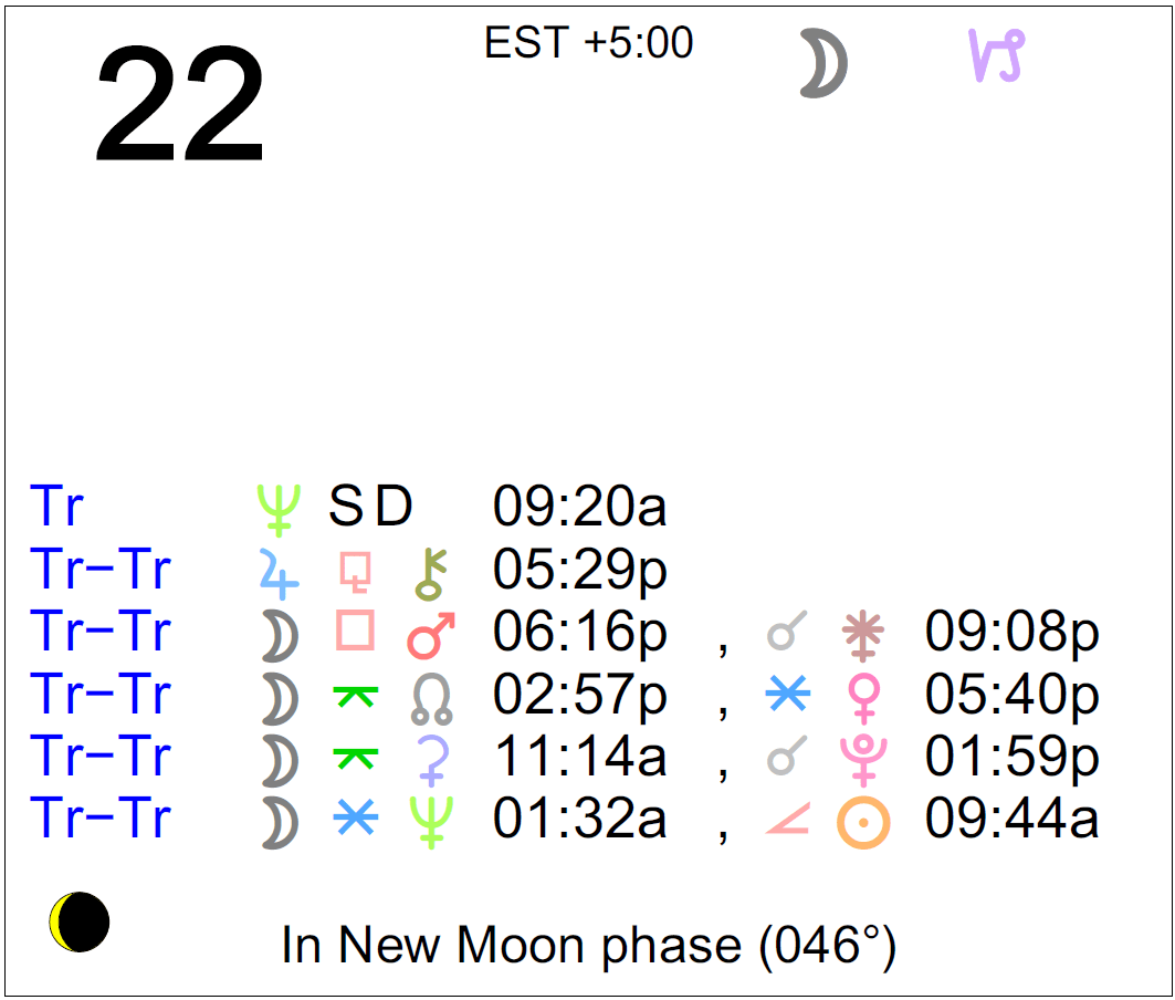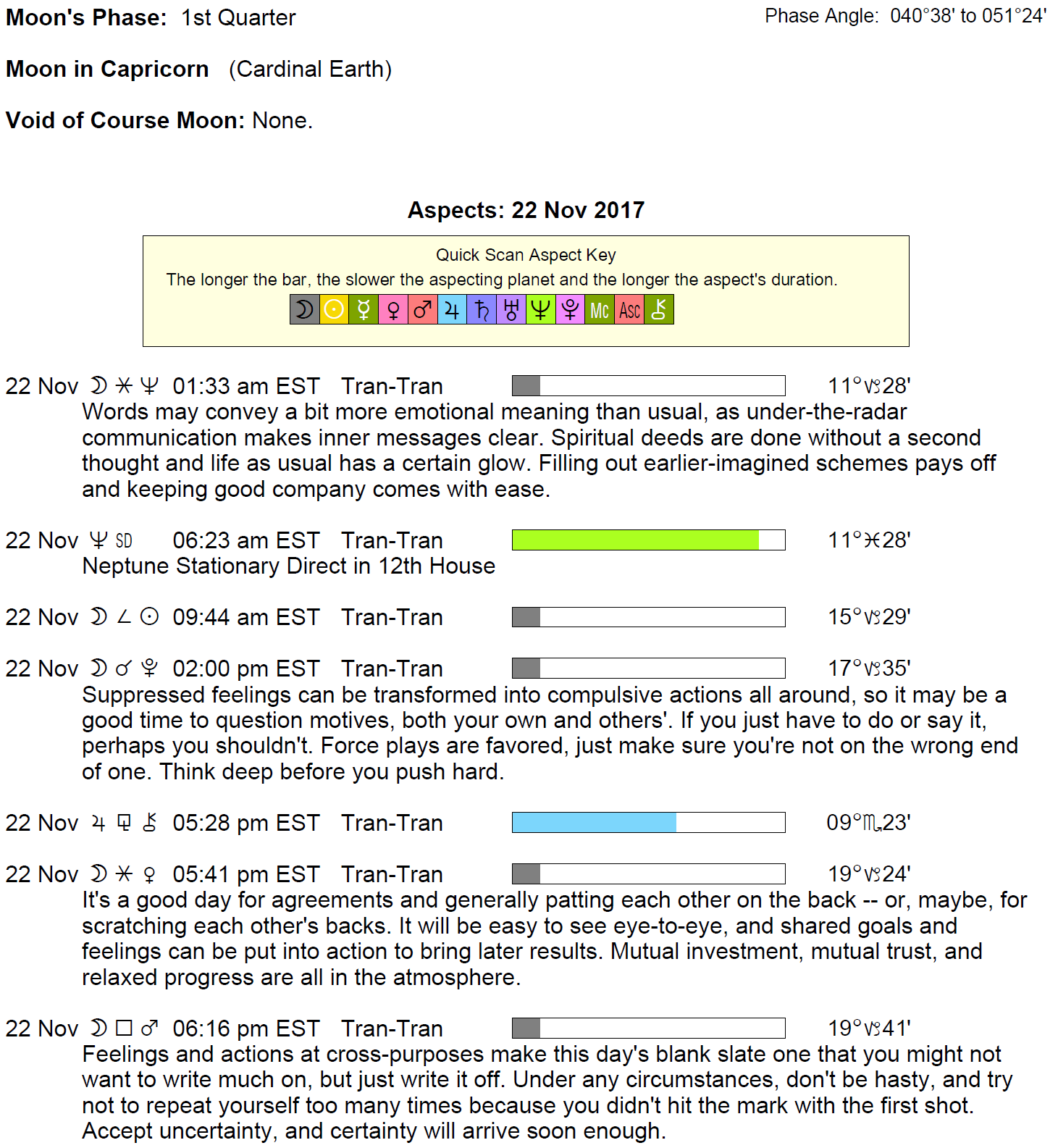 The following aspects (major only) and positions are at noon (EST) on November 22nd: