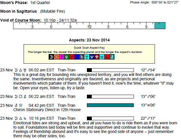 The following aspects (major only) and positions are at noon (EST) on November 23rd: