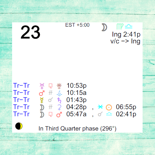 We have an emotional need for order with the Moon in Virgo. Diet, nutrition, health matters, work, and routines are in stronger focus. If we’re feeling out of sorts emotionally, we might also experience symptoms on a physical level now.