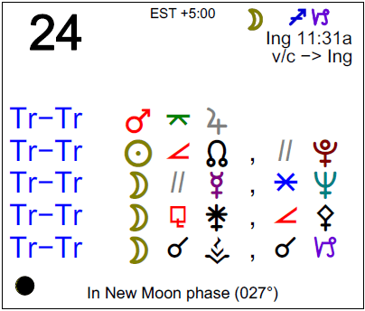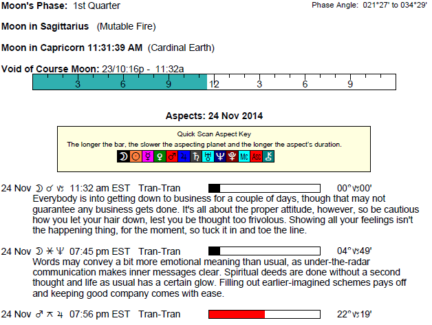 The following aspects (major only) and positions are at noon (EST) on November 24th: