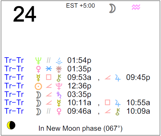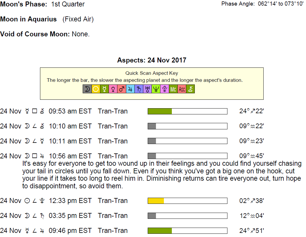 The following aspects (major only) and positions are at noon (EST) on November 24th: