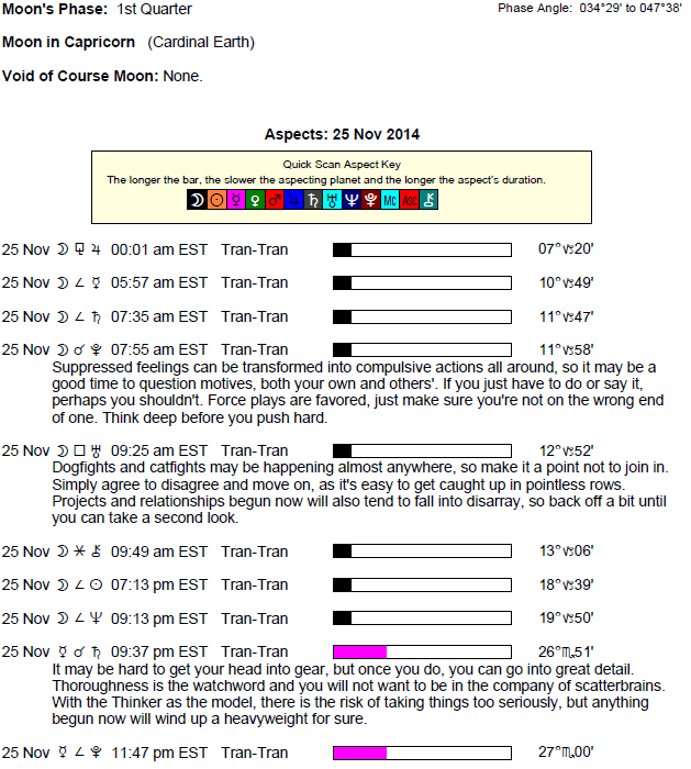 The following aspects (major only) and positions are at noon (EST) on November 25th: