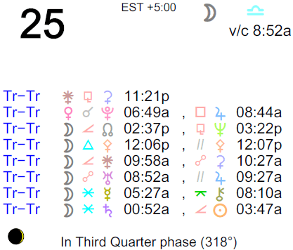 - The Moon is void from 8:52 AM forward (until tomorrow at 3:01 AM).