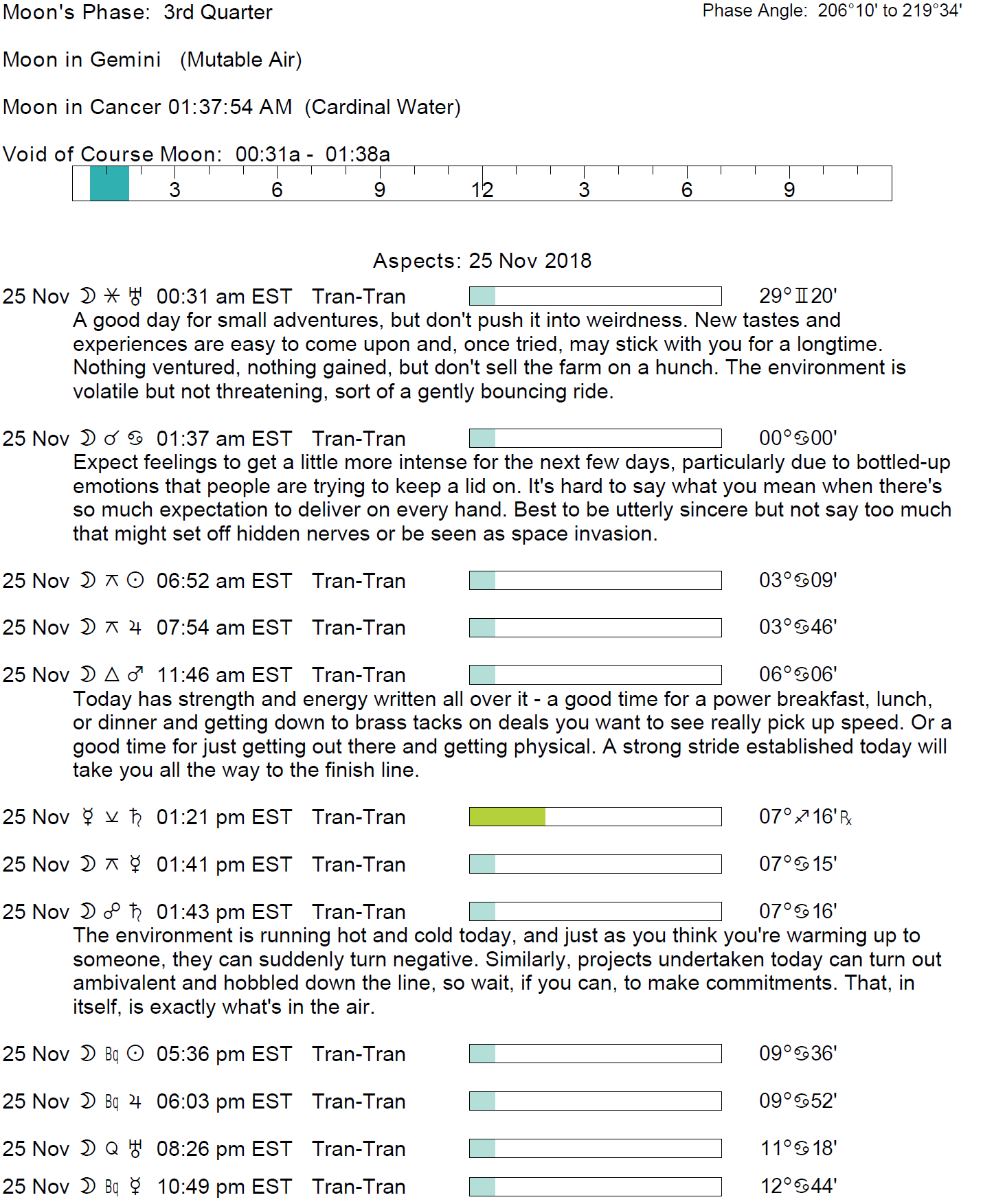 **Conjunctions to Select Fixed Stars on November 25, 2018.**