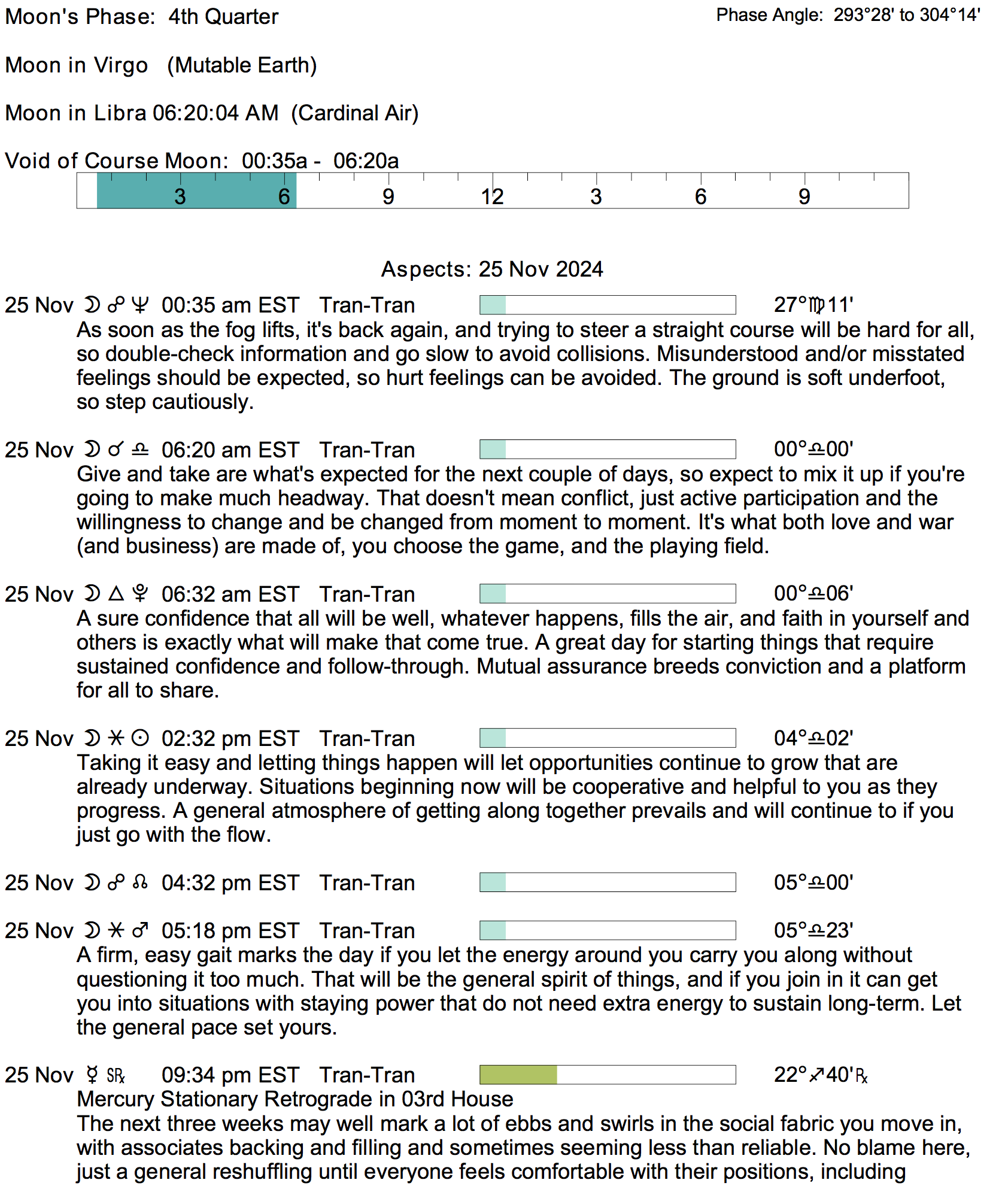 If you’re astrologically inclined and interested in the details of the Astrology of today, here are some of the factors considered in the forecasts: