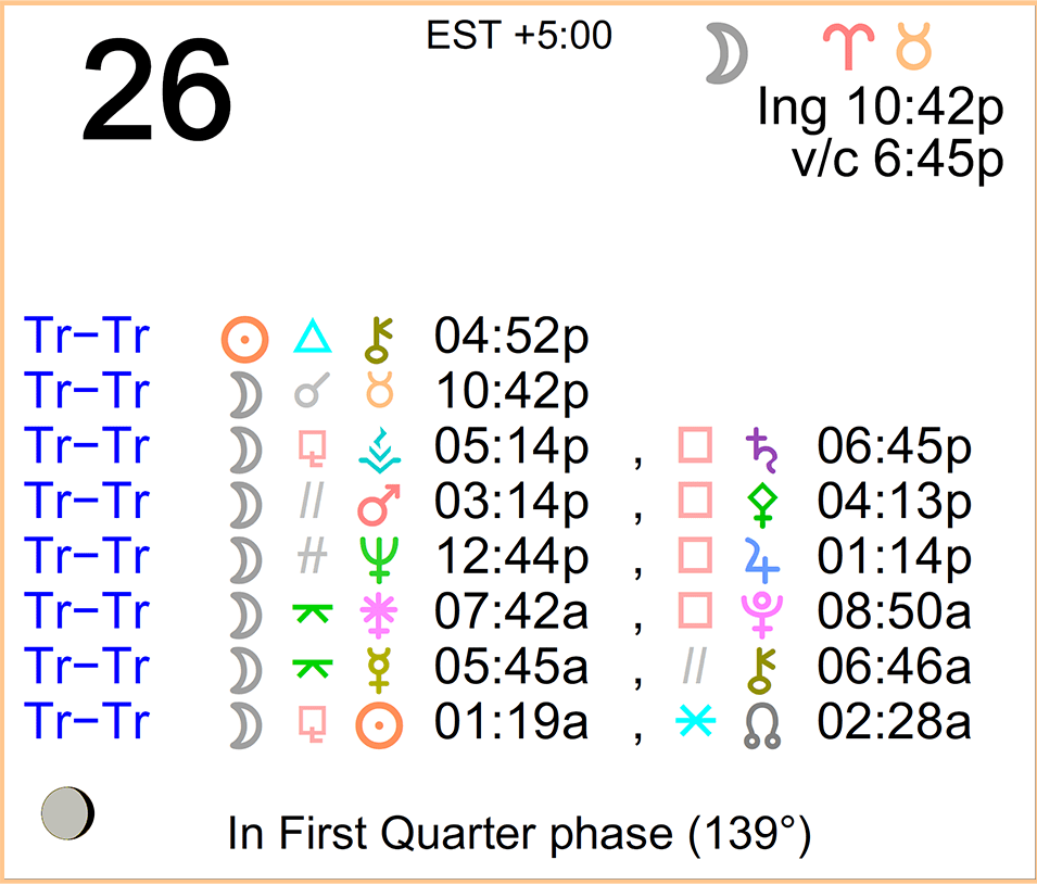 - A void Moon period occurs today from 6:45 PM to 10:42 PM.