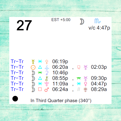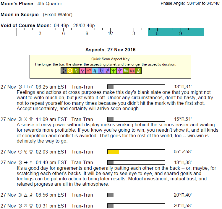 The following aspects (major only) and positions are at noon (EST) on November 27th: