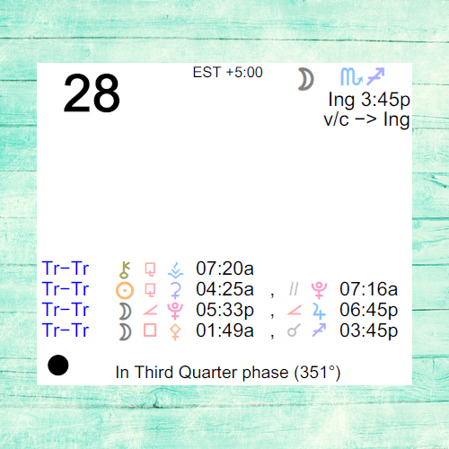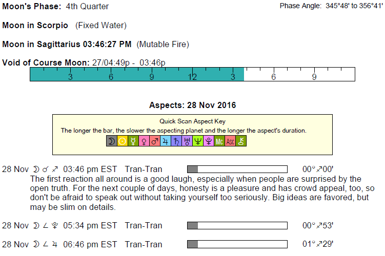 The following aspects (major only) and positions are at noon (EST) on November 28th: