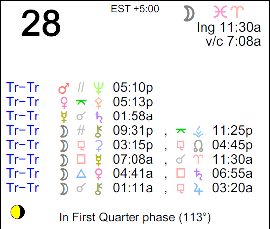 - The Moon is in Pisces until 11:30 AM, after which the Moon is in Aries.