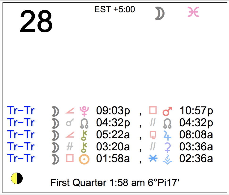 Explore the astrology of the day with zodiac sign horoscopes, daily transits, Moon phases, and planetary signs and aspects.