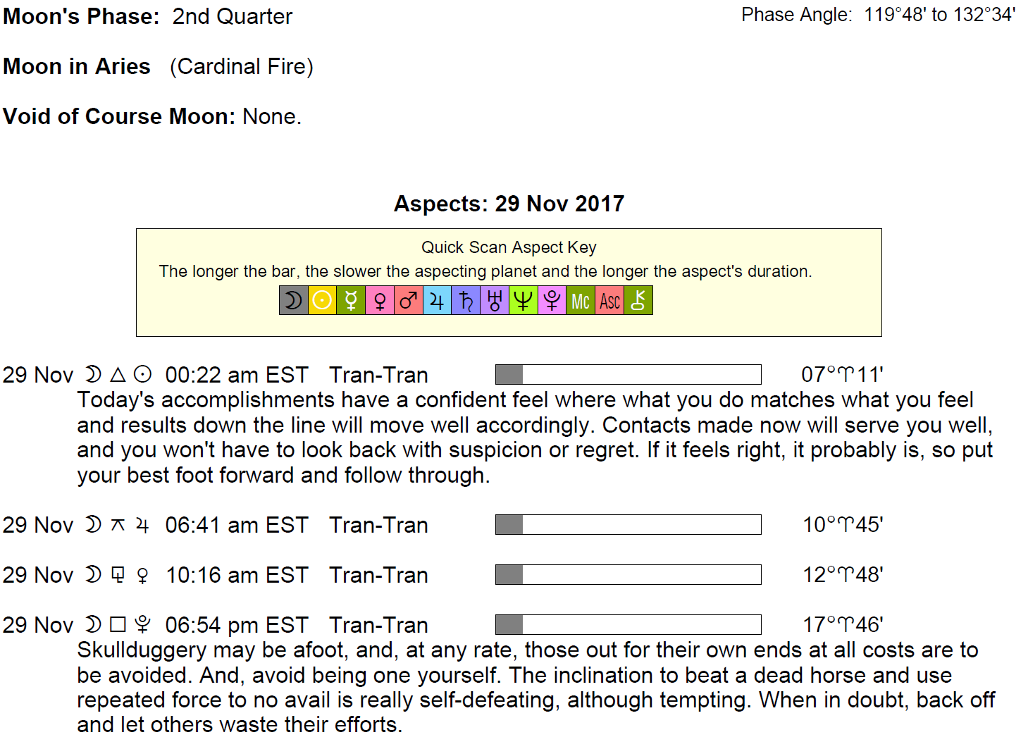 The following aspects (major only) and positions are at noon (EST) on November 29th: