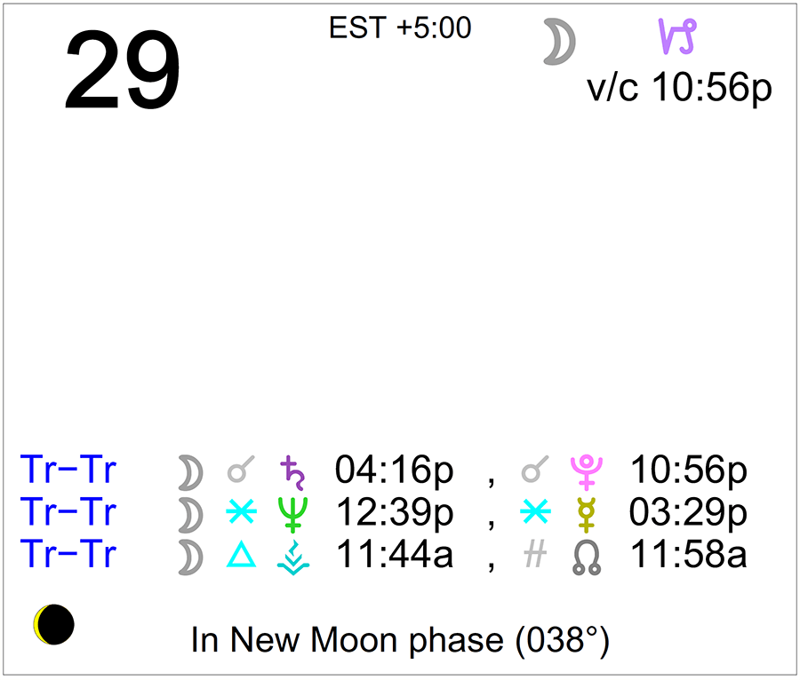 - The void Moon occurs today at 10:56 PM forward (until tomorrow at 3:13 PM).