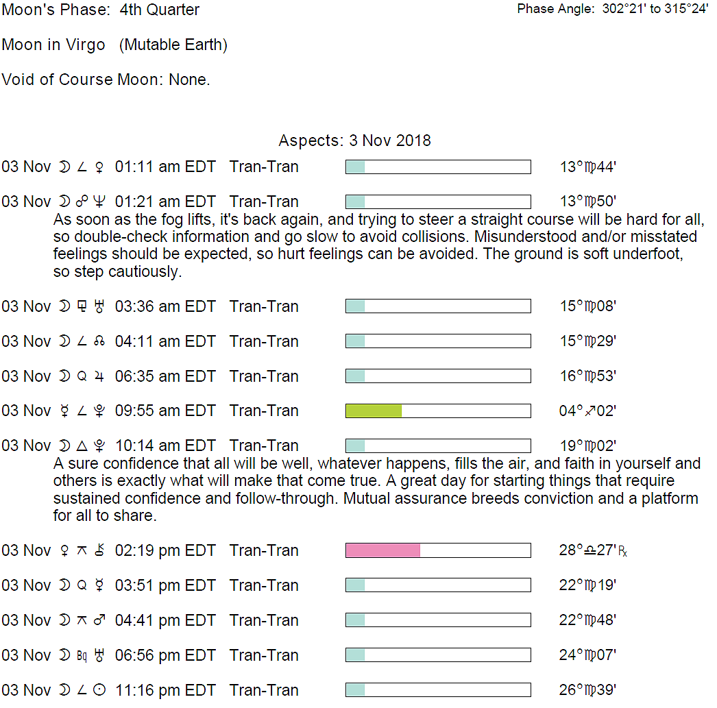 **Conjunctions to Select Fixed Stars on November 3, 2018.**