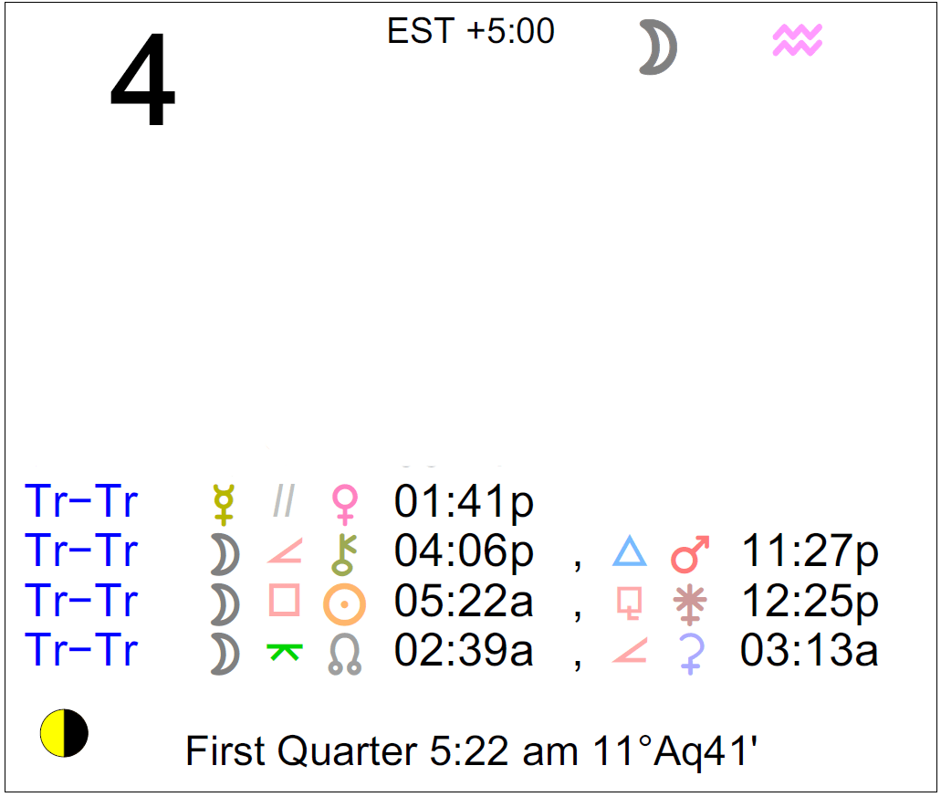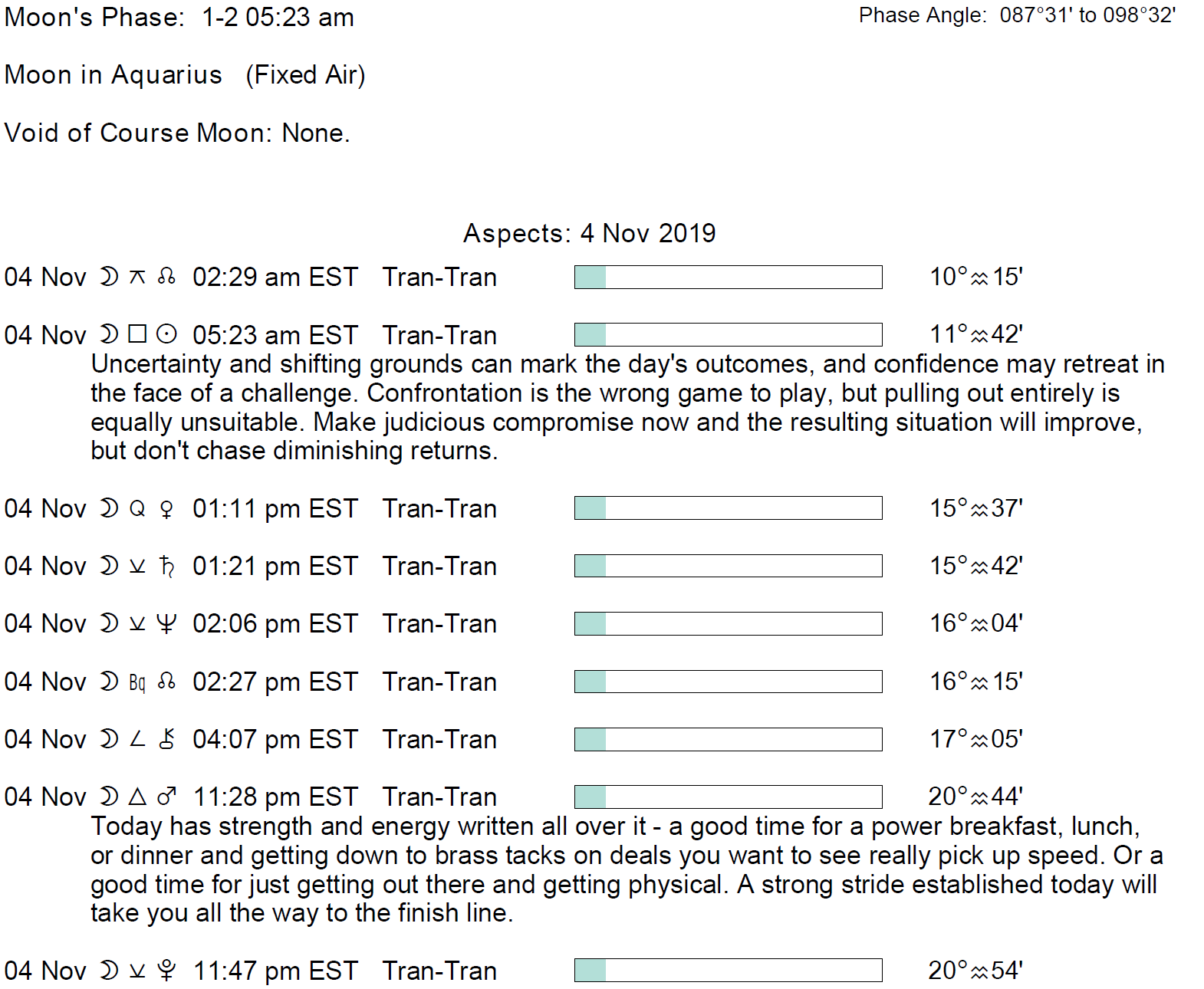Planet Color Key: The longer the bar, the slower the aspecting planet and the longer the duration of the planet’s transit.