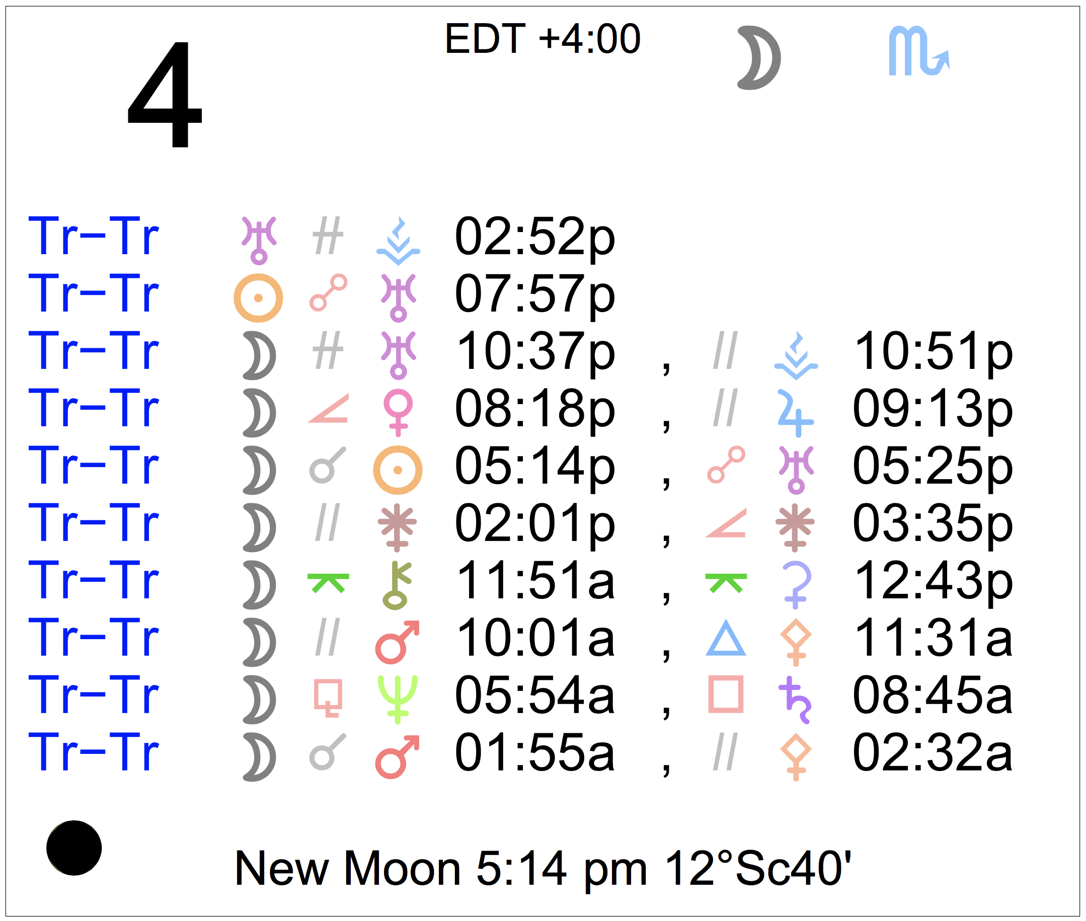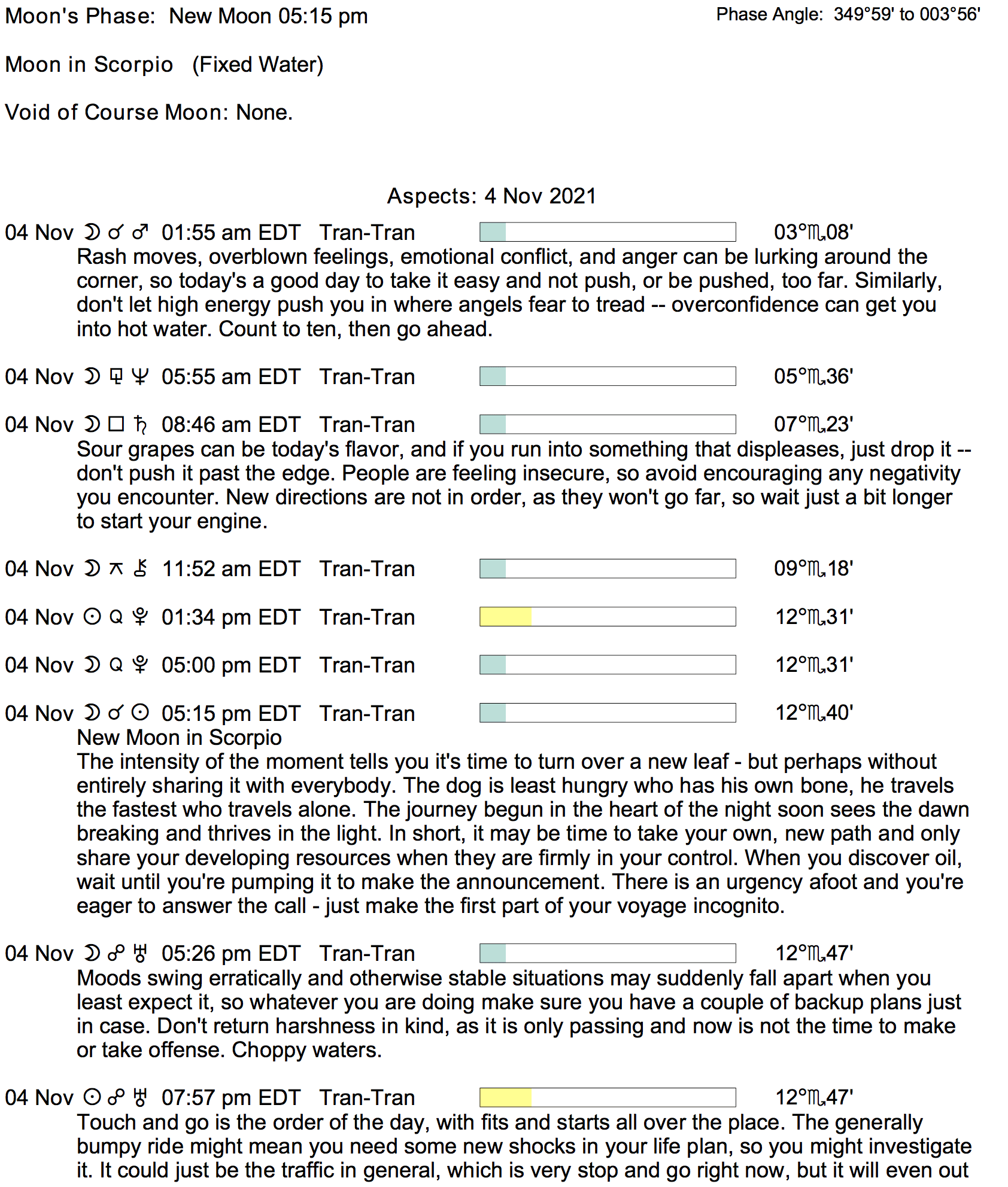 - The New Moon occurs this afternoon in the sign of Scorpio.