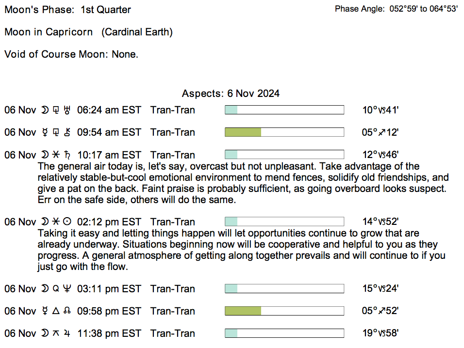 If you’re astrologically inclined and interested in the details of the Astrology of today, here are some of the factors considered in the forecasts: