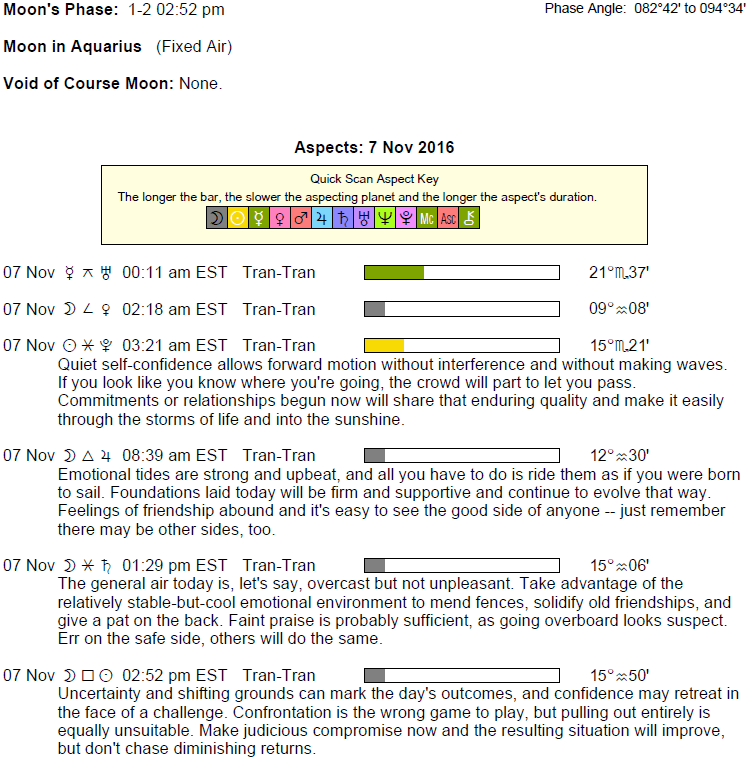 The following aspects (major only) and positions are at noon (EST) on November 7th: