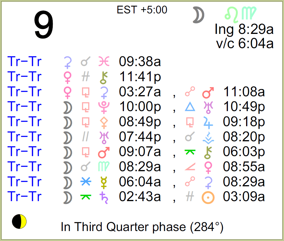 - The Moon is void from 6:04 AM to 8:29 AM today.