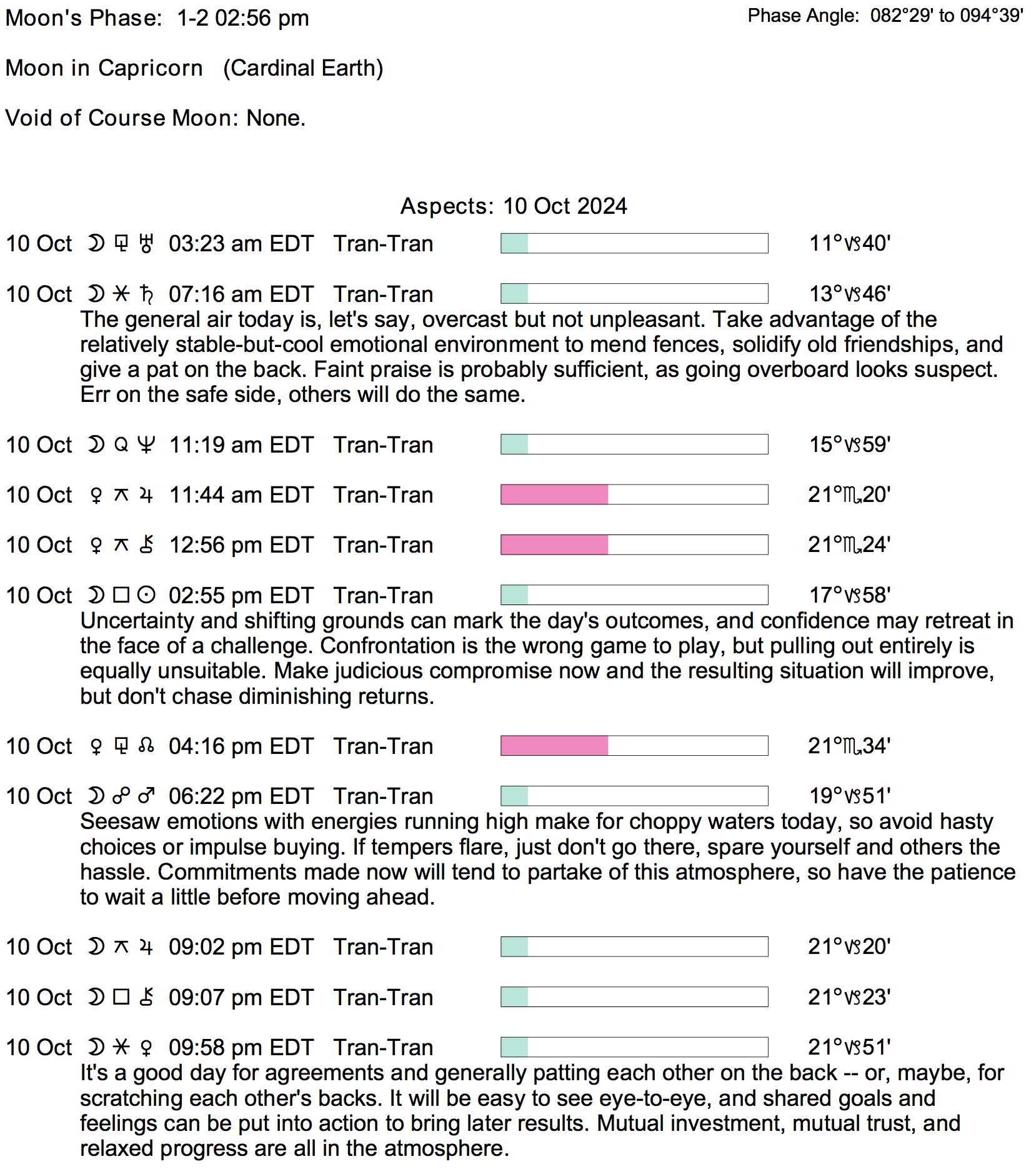 If you’re astrologically inclined and interested in the details of the Astrology of today, here are some of the factors considered in the forecasts: