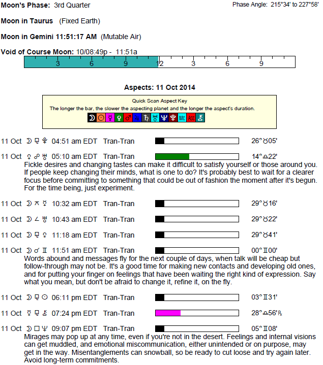 The following aspects (major only) and positions are at noon (EDT) on October 11th: