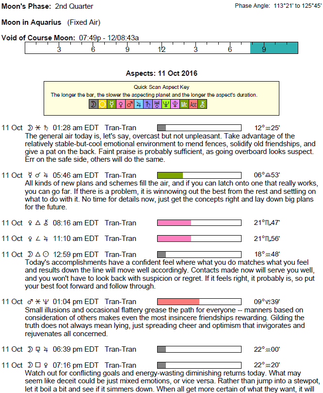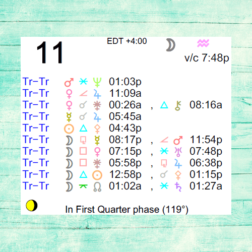 - The Moon is in Aquarius all day (until Wednesday, October 12th, at 8:42 AM).