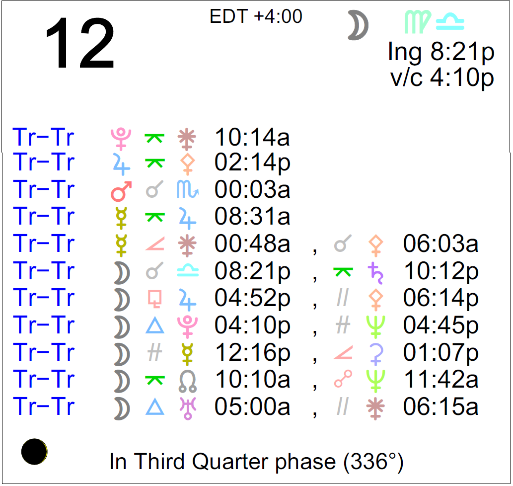 - A void Moon period occurs from 4:10 PM to 8:21 PM today.