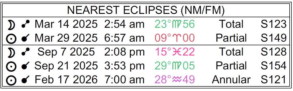 Planet Color Key: The longer the bar, the slower the aspecting planet, and the longer the duration of the planet’s transit.