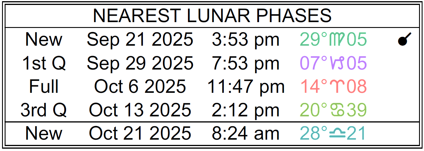- A Full Moon occurred on the 6th in the sign of Aries, and a Last Quarter Moon will occur tomorrow.