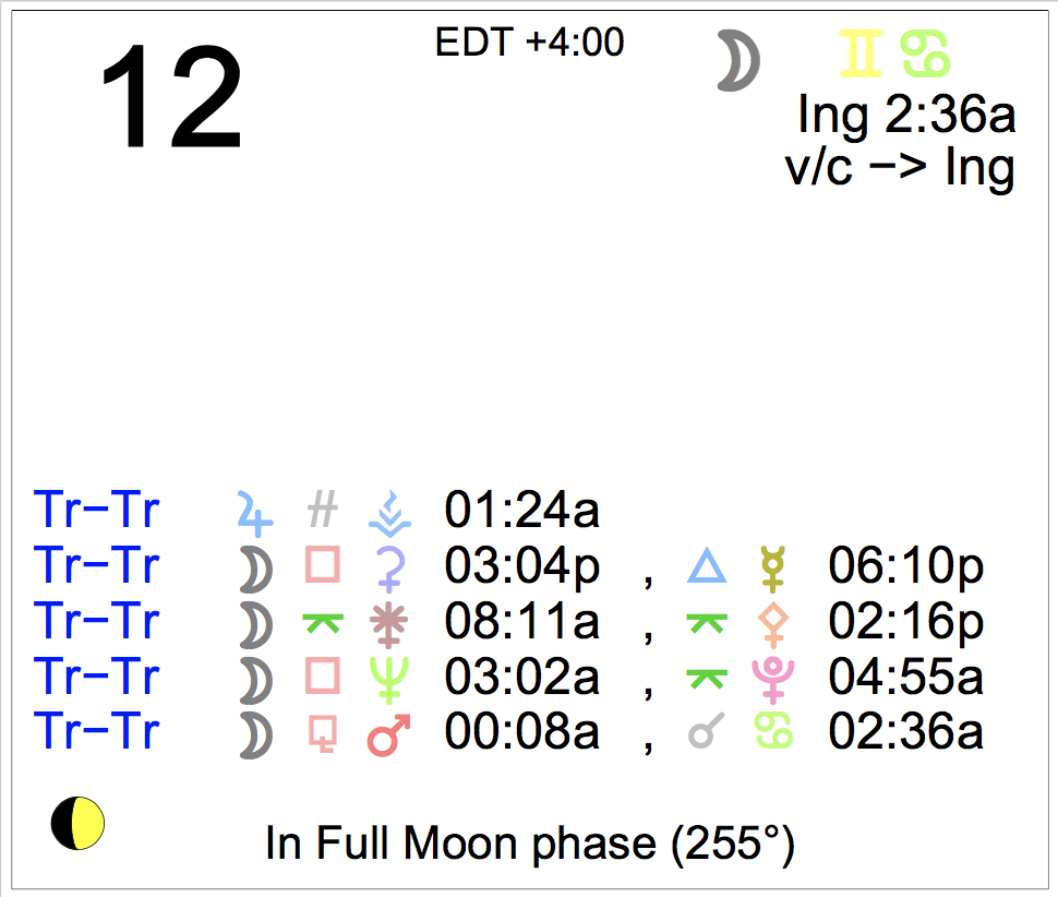 - The void Moon continues until 2:36 AM (since last night at 10:55 PM).