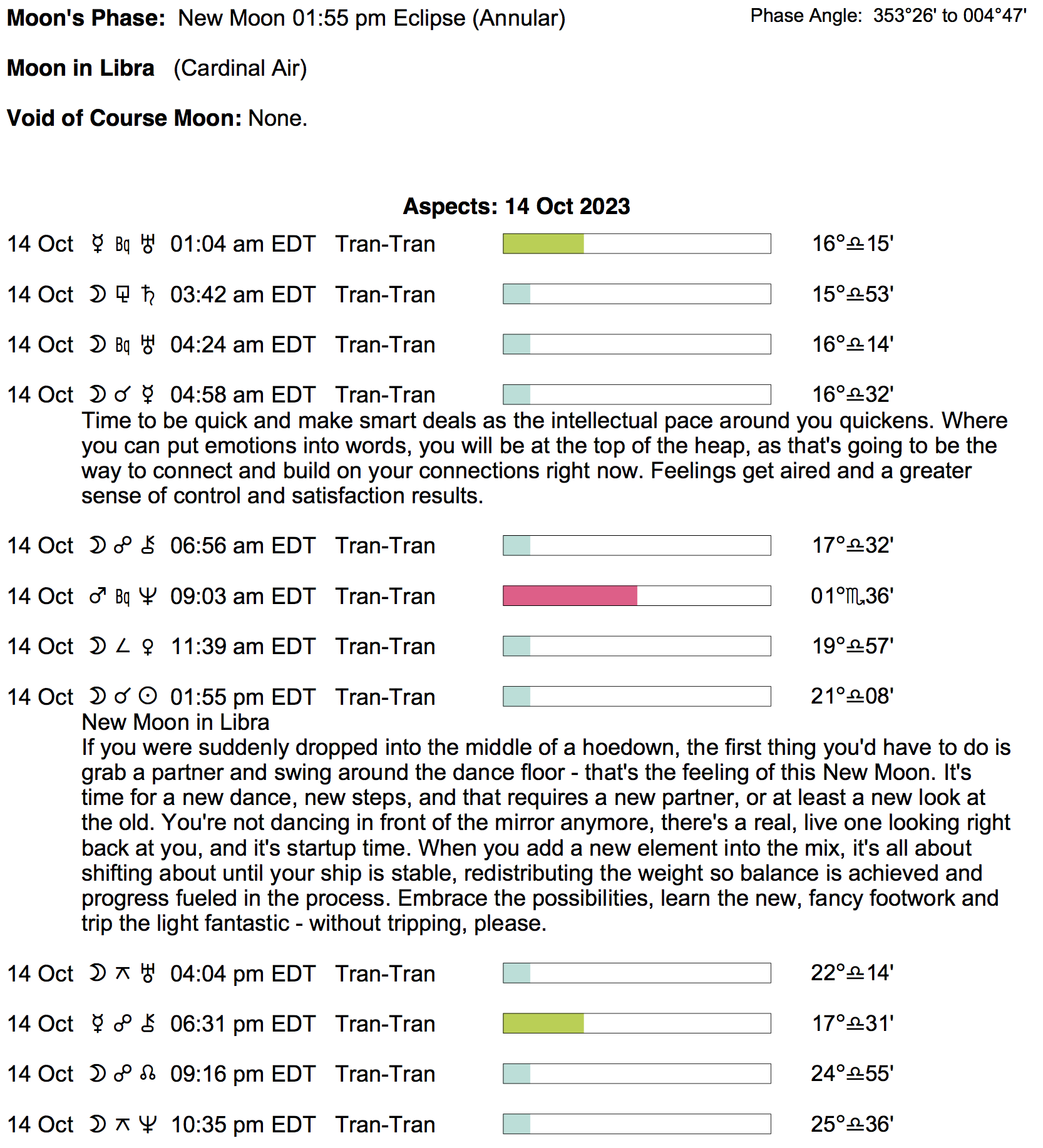 - The New Moon Solar Eclipse occurs today at 1:54 PM in the sign of Libra.