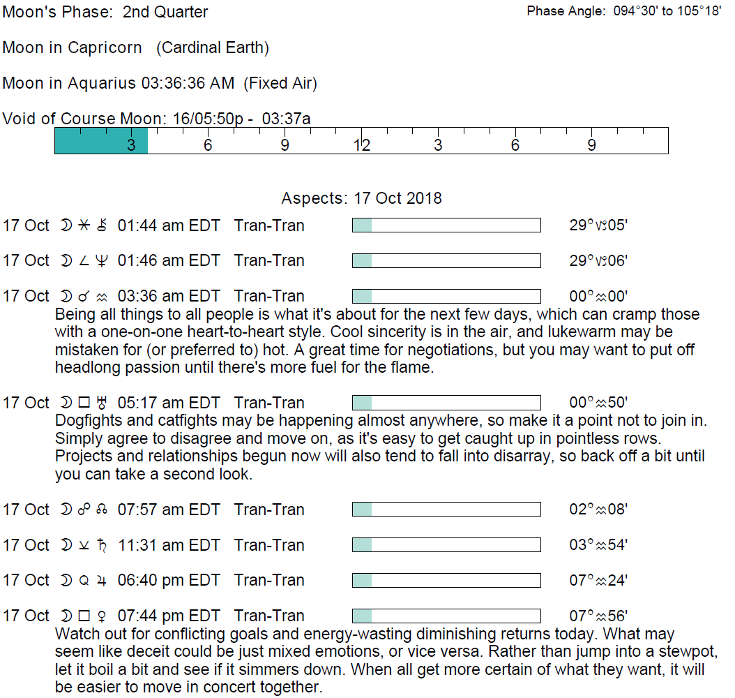 **Conjunctions to Select Fixed Stars on October 17, 2018.**
