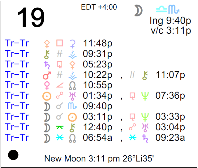 - The New Moon occurs today at 3:11 PM in the sign of Libra.