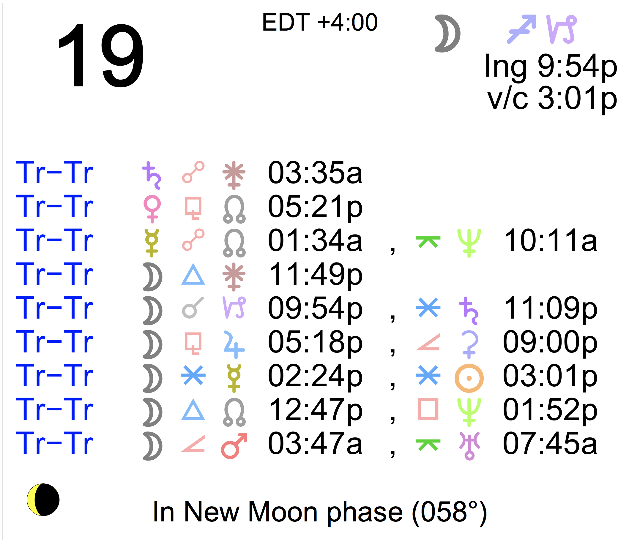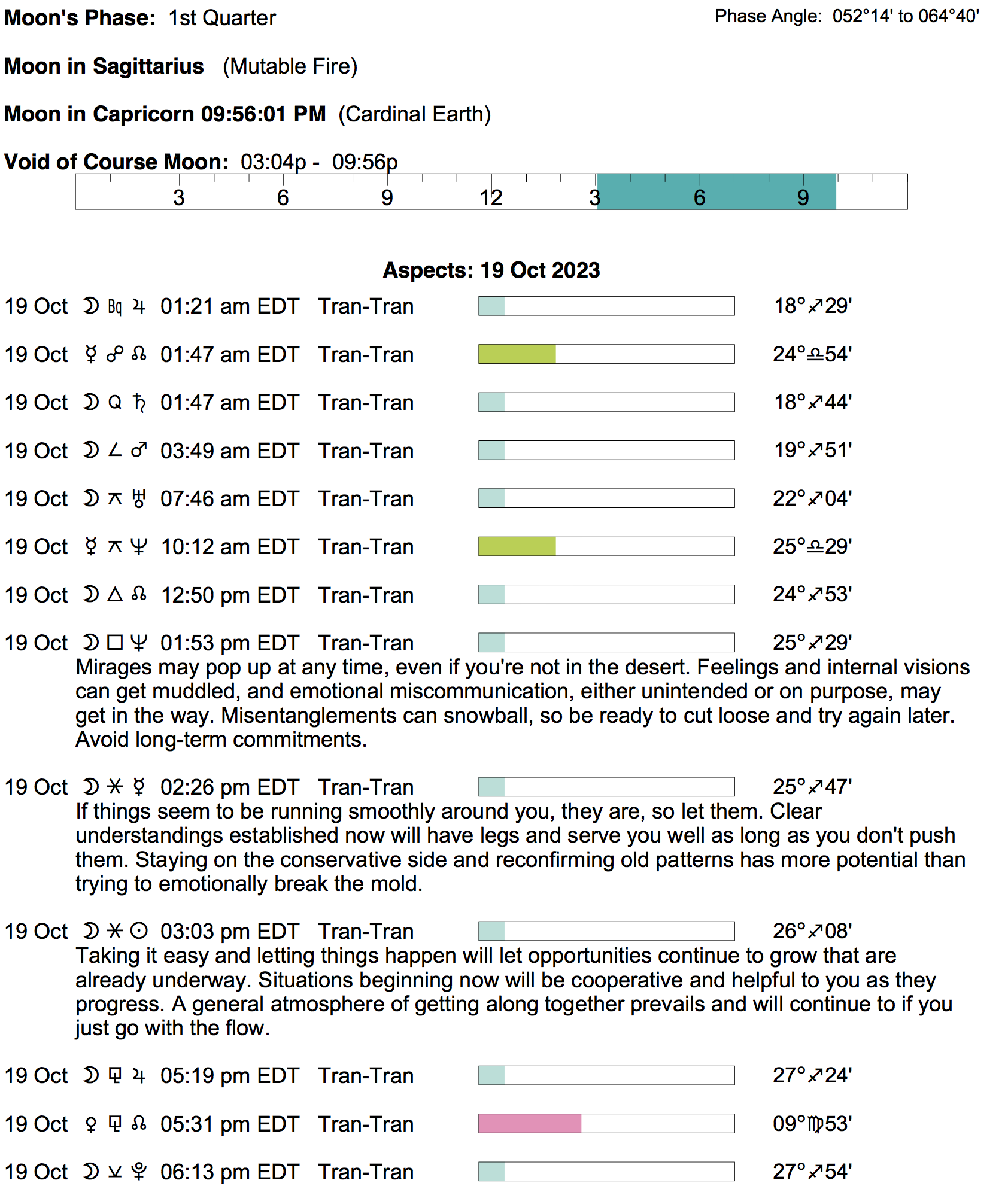 - A void Moon period occurs from 3:01 PM to 9:54 PM today.