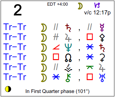 The following aspects (major only) are at noon (EDT) on October 2nd: